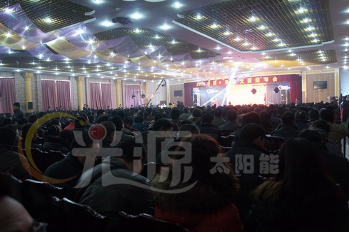 在年會上,中國太陽能熱利用產(chǎn)業(yè)聯(lián)盟副理事長、中國太陽能熱利用產(chǎn)業(yè)協(xié)會副理事長、河北光源太陽能科技有限公司董事長李成彬首先致辭。他代表光源公司對各位領(lǐng)導(dǎo)、專家、經(jīng)銷商朋友的到來表示熱烈歡迎和衷心感謝,對光源2013年取得的成績和2014年發(fā)展方向進(jìn)行了總結(jié)和展望。行業(yè)領(lǐng)導(dǎo)朱俊生、羅振濤、謝光明、賈鐵鷹、何濤先后講話。在講話中,領(lǐng)導(dǎo)們肯定了光源跨越發(fā)展取得的喜人成績,肯定了光源在全國同行業(yè)中的地位和作用,對光源未來發(fā)展提出了指導(dǎo)性意見。光源公司總經(jīng)理劉迎波在講話中詳細(xì)總結(jié)了光源在2013年取得的重大成績。他說,在過去的2013年光源太陽能以強(qiáng)勁的發(fā)展勢頭取得了一個又一個令人驕傲的成績。2013年我們的產(chǎn)銷量比去年凈增 16.5%,經(jīng)銷商數(shù)量增長了40%。收獲了中國馳名商標(biāo)、國家級重點(diǎn)新產(chǎn)品、國家級重點(diǎn)高新技術(shù)企業(yè)三大國字號榮譽(yù)。劉迎波對光源2014年的工作從七個方面進(jìn)行了闡述。一是,加大營銷和市場建設(shè)力度;二是,加大招商促銷力度;三是,加大廣告支持力度;四是,加大工程市場開發(fā)力度;五是,進(jìn)一步加大產(chǎn)品質(zhì)量監(jiān)管力度;六是,進(jìn)一步加大對經(jīng)銷商扶持力度;七是,加大新產(chǎn)品研發(fā)力度。劉迎波最后說,光源太陽能產(chǎn)業(yè)園的開業(yè)盛典,拉開了光源太陽能跨越發(fā)展的新一幕,讓我們齊心協(xié)力,眾志成城,策馬揚(yáng)鞭,共筑美好未來!