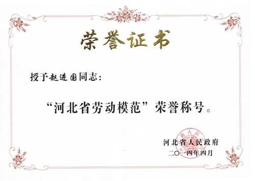 2014年5月前夕,河北省召開全省勞動(dòng)模范先進(jìn)工作者和先進(jìn)集體表彰大會(huì),光源太陽(yáng)能公司趙進(jìn)國(guó)榮獲“河北省勞動(dòng)模范”稱號(hào)。
