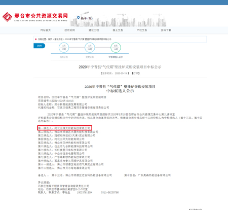 "煤改氣"是當下我國政府在改善空氣質(zhì)量的民生重點工程,各地區(qū)政府在項目招投標的過程中對產(chǎn)品能效、品牌實力和售后服務進行嚴格篩選,只有在市場表現(xiàn)上品質(zhì)最可靠、運行最穩(wěn)定、服務最專業(yè)的產(chǎn)品方能入圍。光源公司在2020年寧晉縣“氣代煤”壁掛爐采購安裝項目招標中以第一候選人:河北光源太陽能科技有限公司優(yōu)異成績拔得頭籌。