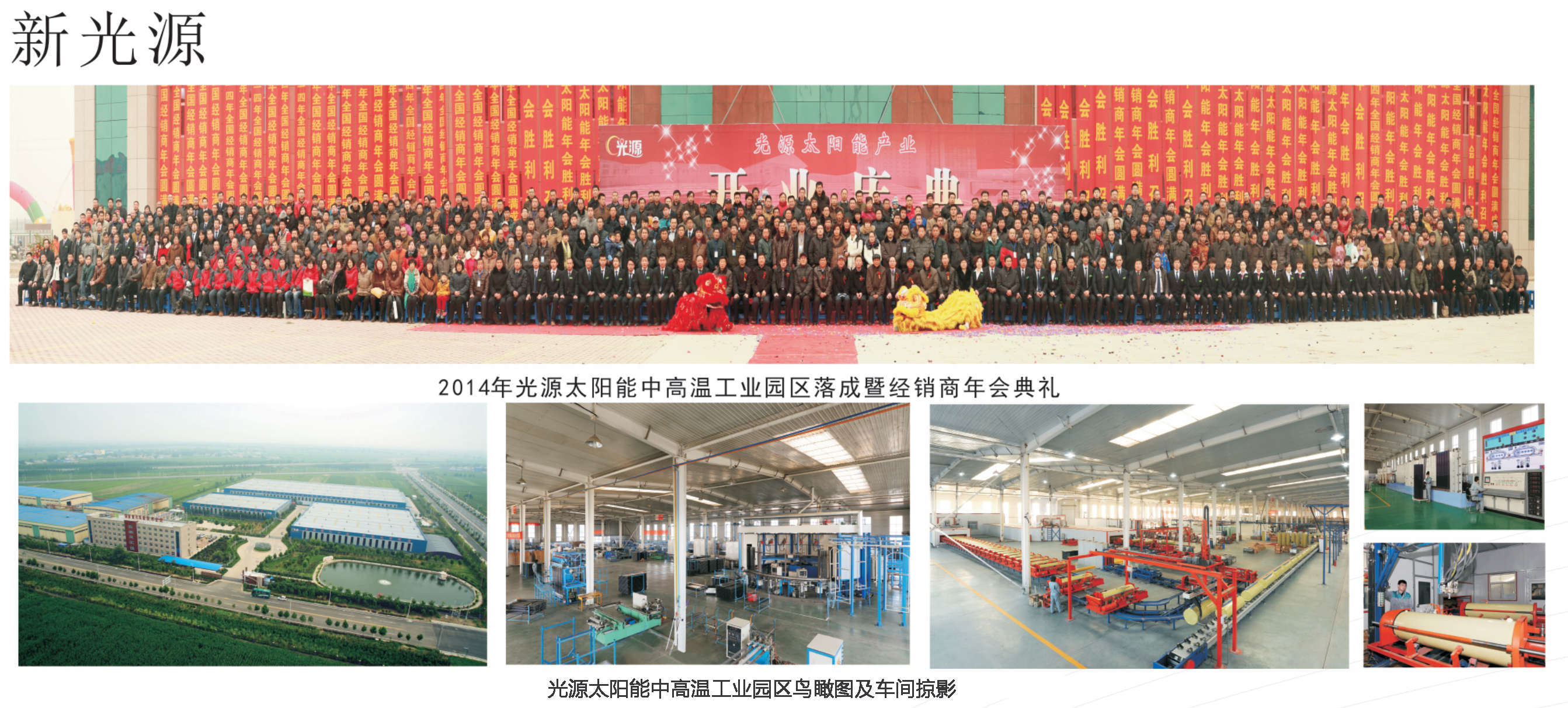 2013年12月光源公司搬遷到新廠區(qū),如今的光源公司,以黨的路線方針和政策為指導,以科技發(fā)展與創(chuàng)新為契機,以太陽能開發(fā)與利用為訴求,不僅夯實了太陽能熱水系統(tǒng)等傳統(tǒng)產(chǎn)品的基石,更在新能源產(chǎn)品的開發(fā)中屢戰(zhàn)佳績。