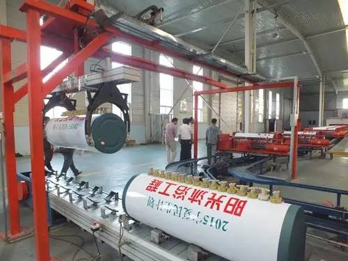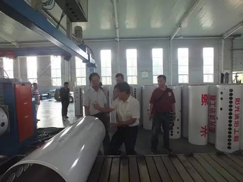 在參觀完太陽能真空集熱管制造車間后又到了太陽能工程設(shè)備總裝車間,先后參觀了全自動下料開平設(shè)備、轉(zhuǎn)塔式全自動數(shù)控沖床生產(chǎn)線、全自動外皮雙頭縮口滾花機(jī)、臥式反向積放發(fā)泡生產(chǎn)線、環(huán)戊烷聚氨酯高壓發(fā)泡機(jī)、全自動數(shù)控打包生產(chǎn)線以及壁掛太陽能生產(chǎn)線等等。