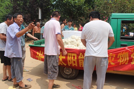 根據(jù)開發(fā)區(qū)管委會(huì)統(tǒng)一安排,轄區(qū)內(nèi)企業(yè)對受災(zāi)村民在生活上進(jìn)行對口支援。光源太陽能公司與其他幾家企業(yè)支援景家屯村。其中光源公司為景家屯300名村民提供一日三餐,解決300口人的生活問題。