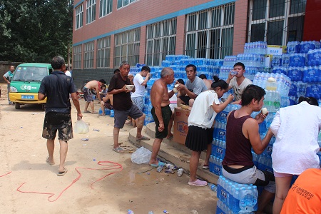 邢臺(tái)經(jīng)濟(jì)開發(fā)區(qū)東汪鎮(zhèn)景家屯村,是邢臺(tái)7.19洪水侵襲的重點(diǎn)村之一。從7月19日晚斷電斷水至今,水電供應(yīng)因施工難度大,至今仍未恢復(fù)。村民一日三餐,僅以礦泉水、方便面(干吃)充饑。