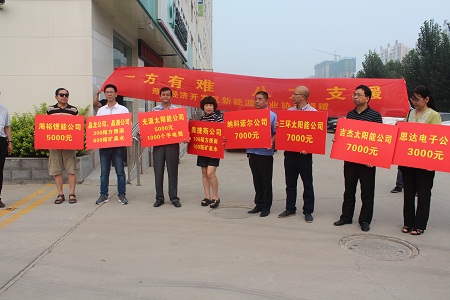 洪災(zāi)無情人有情。地處邢臺經(jīng)濟開發(fā)區(qū)的光源太陽能科技有限公司一方面做好自我防汛抗汛工作,一方面向邢臺經(jīng)濟開發(fā)區(qū)災(zāi)民捐款捐物,幫助受災(zāi)群眾渡過難關(guān)。