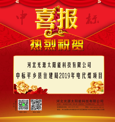 一份耕耘,一份收獲,有志者事竟成。入七月份來,我公司捷報頻傳, 熱烈祝賀我公司(河北光源太陽能科技有限公司)7月26日平鄉(xiāng)縣電代煤項(xiàng)目成功中標(biāo)。本次中標(biāo)再一次認(rèn)可了我公司的產(chǎn)品質(zhì)量,驗(yàn)證了我公司的實(shí)力。